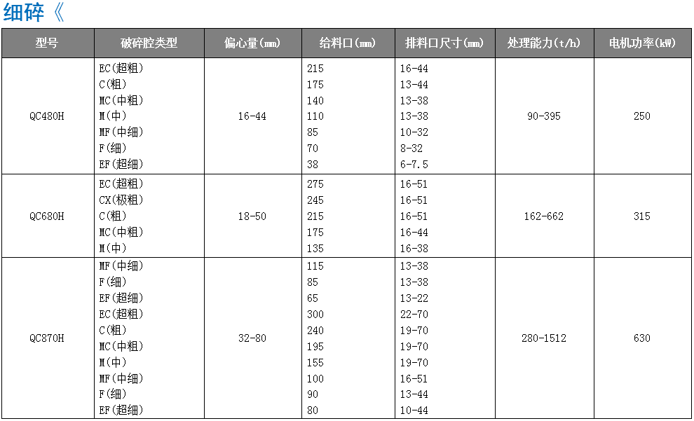 QC系列單缸圓錐破碎機具有高破碎率、高產 品質量和低生產成本特性,能夠適用各種工況及破 碎物料,可滿足中碎、細碎及超細碎的破碎要求